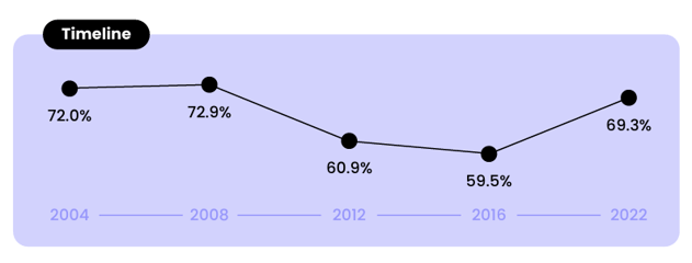 Above shows the change in the percentage of working students between 2004 and 2022.